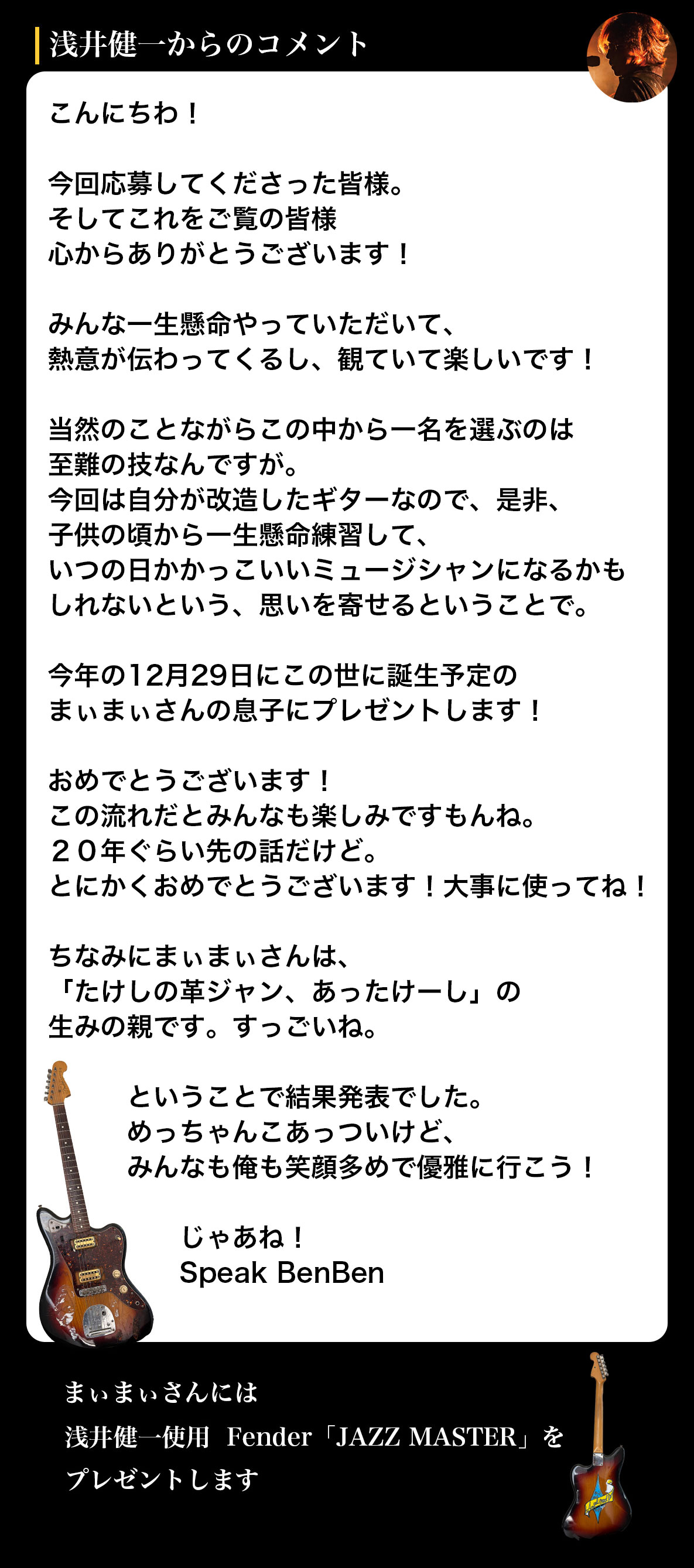 ベンジーからの特別プレゼントとしてギターを進呈!!
